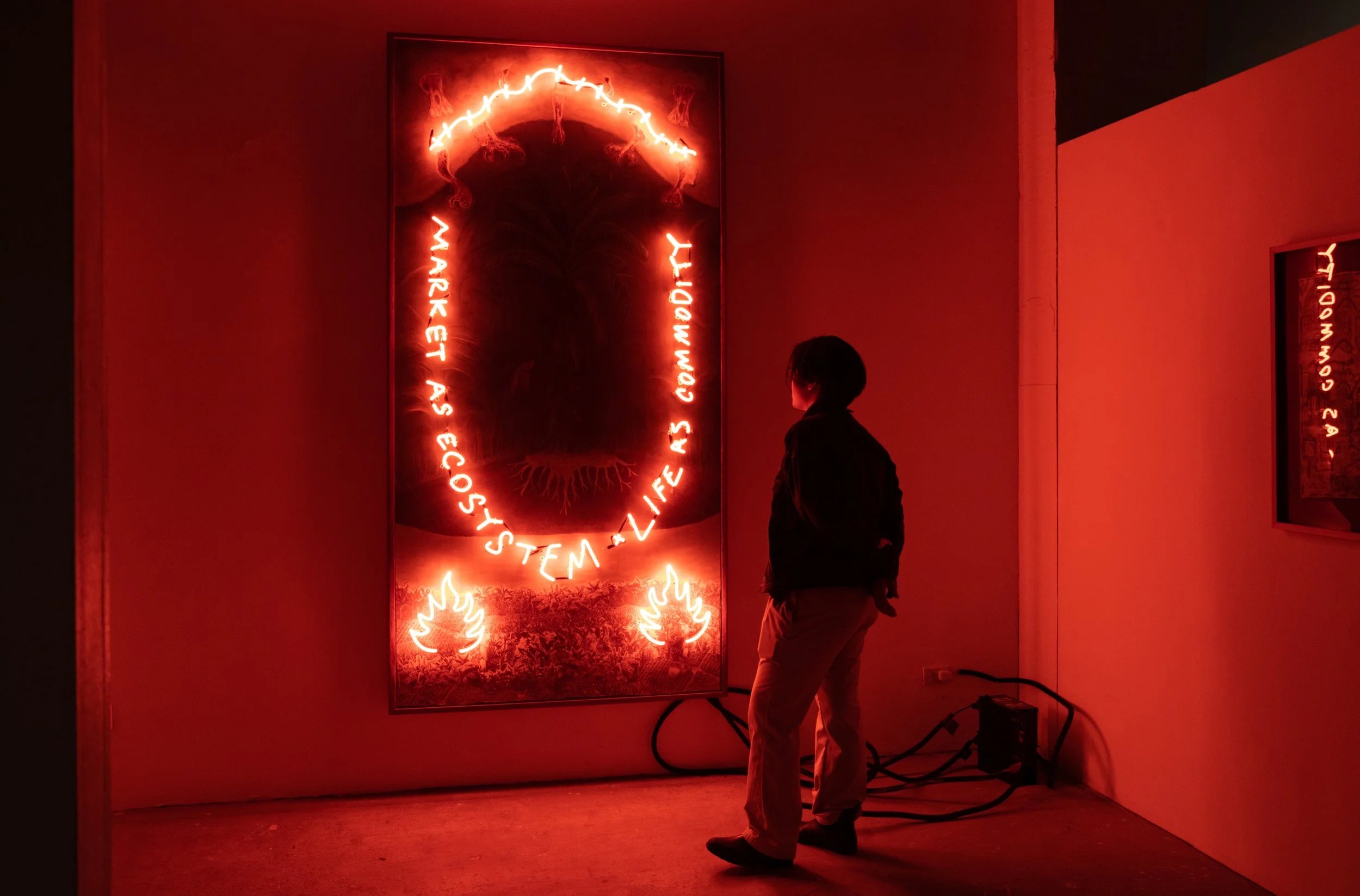 Cian Dayrit (b. 1989) challenges dominant perspectives of power and space through textile and other mediums. His works explore colonialism, archaeology, and history while subverting the language and workings of institutions such as the state, museums, and the military to understand and visualize the contradictions on which these platforms or formats are built. He received the Ateneo Art Awards Fernando Zóbel Prizes for Visual Art in 2017 and is a Cultural Center of the Philippines Thirteen Artists Awards recipient. His works have been featured in biennials across the globe: Gwangju Biennale, Berlin Biennale for Contemporary Art, Dhaka Art Summit, New Museum Triennial “Songs for Sabotage” in New York, Göteborg Biennial, and at the 2022 Kathmandu Triennale. Dayrit has also participated in exhibitions at Para Site Hong Kong, Hammer Museum Los Angeles, the Metropolitan Museum of Manila, the Museum of Modern Art, Warsaw, Jameel Arts Centre, Dubai. His works were presented at Frieze London in 2019 and at Art Dubai in 2022. Dayrit completed artist residencies at Bellas Artes Projects in Bataan and at Gasworks, London.