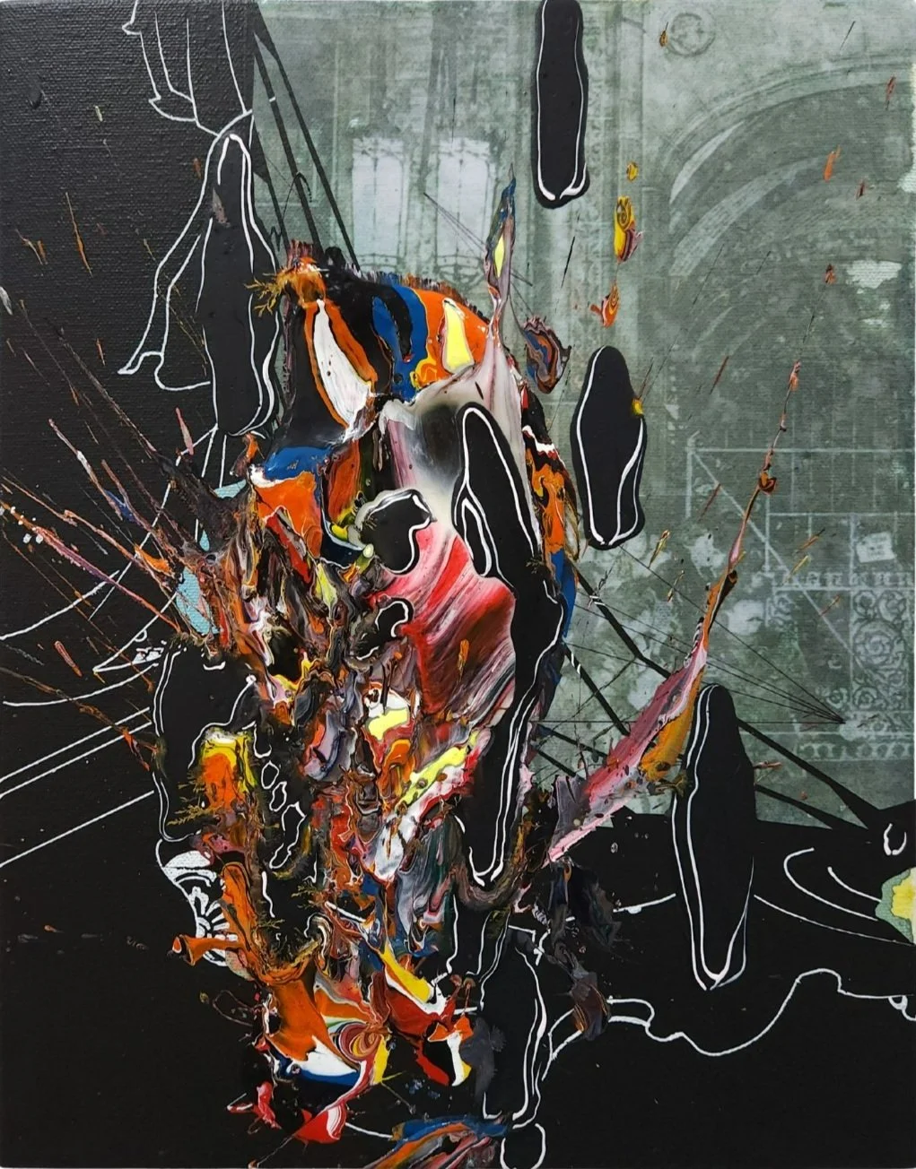 "Fingers and car parts", 2023, Acrylic on canvas, 20 x 16 in (50.8 x 40.6 cm)