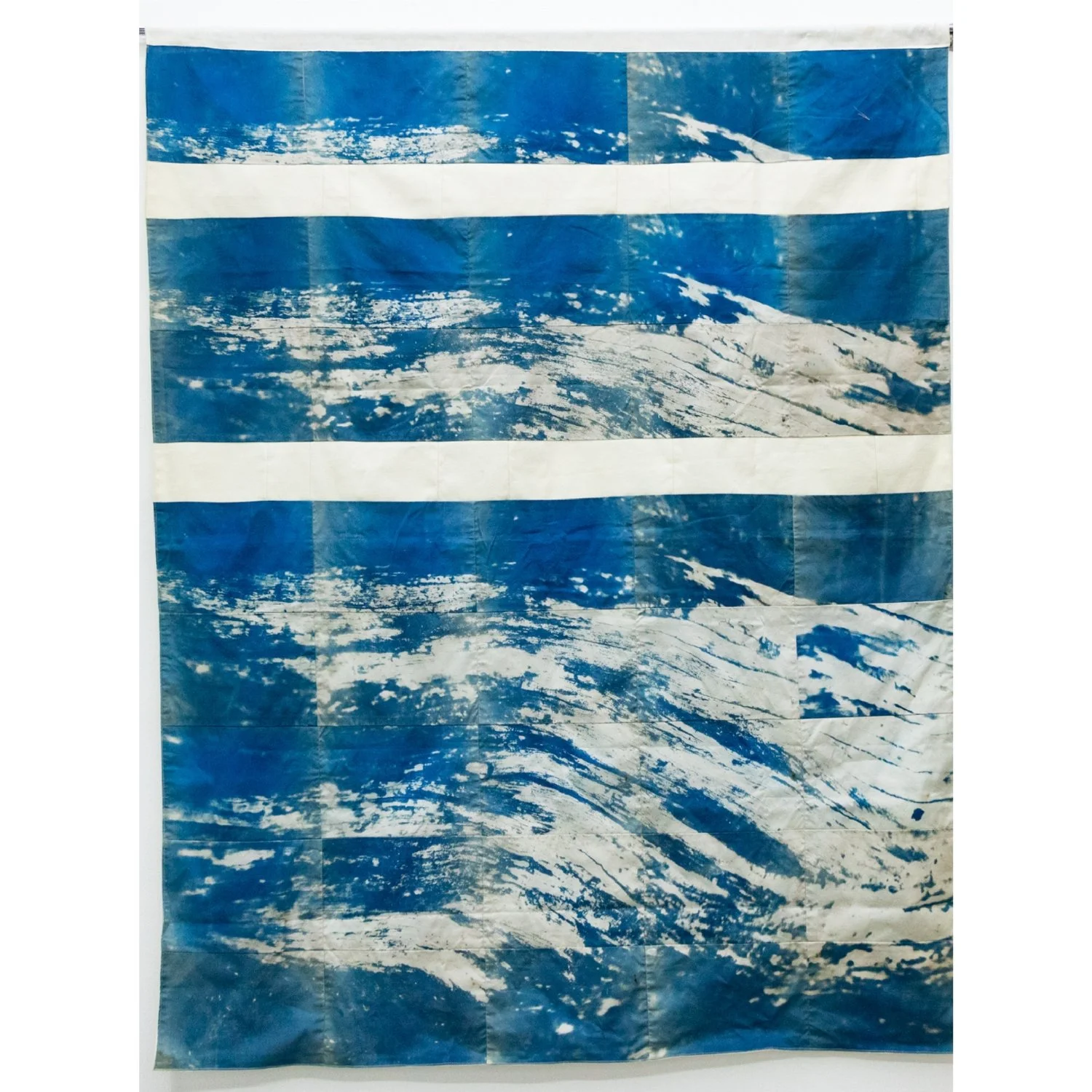 "For What It Was", 2023, Cyanotype print on textile, 66 1/2 x 51 3/4 in (169 x 131.4 cm)