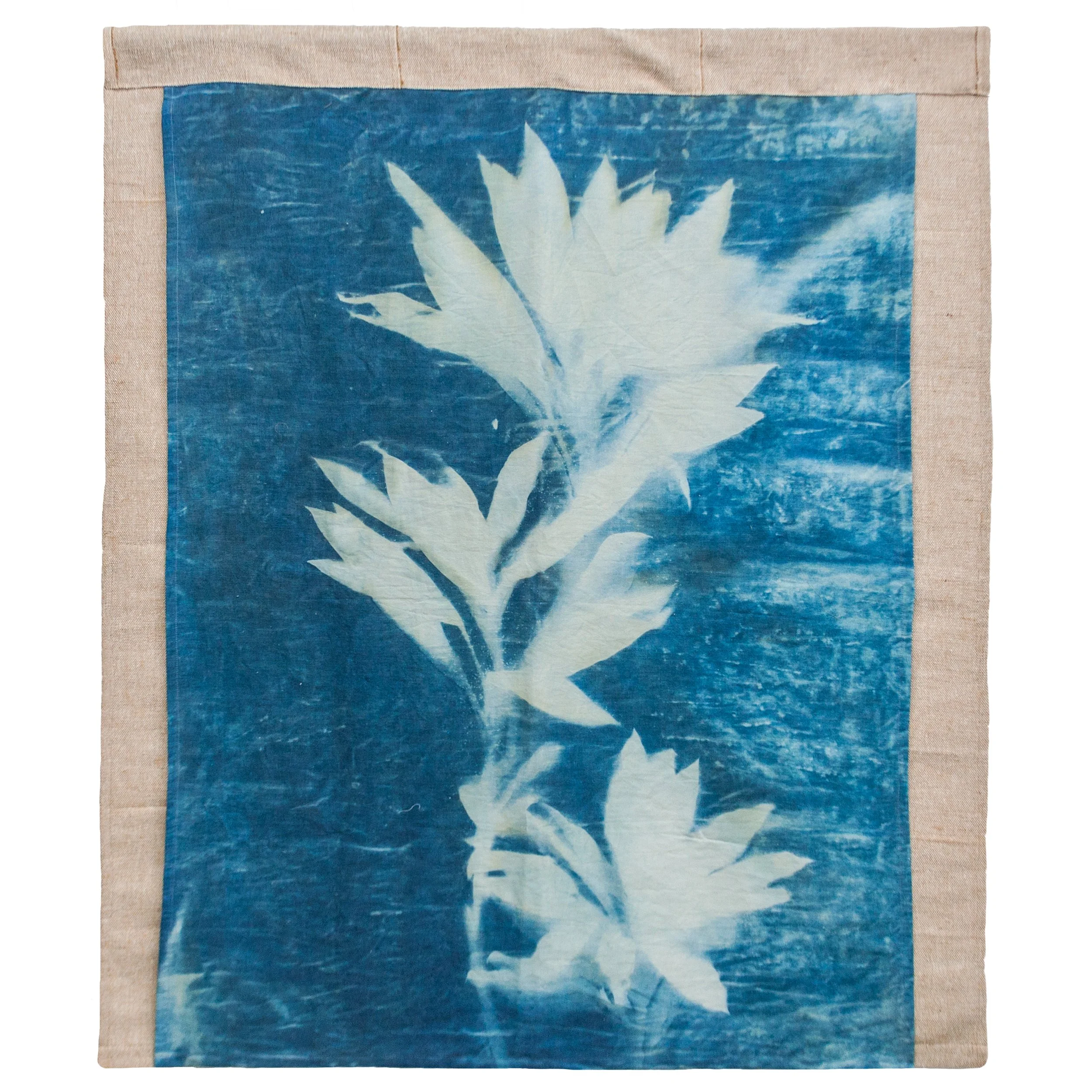 "Borrowed Plants II (Cordyline fruticosa, Calliandra haematocephala)", 2023, Cyanotype on canvas with burlap backing, approx. 61 3/8 x 50 3/4 in (approx. 156 x 129 cm)