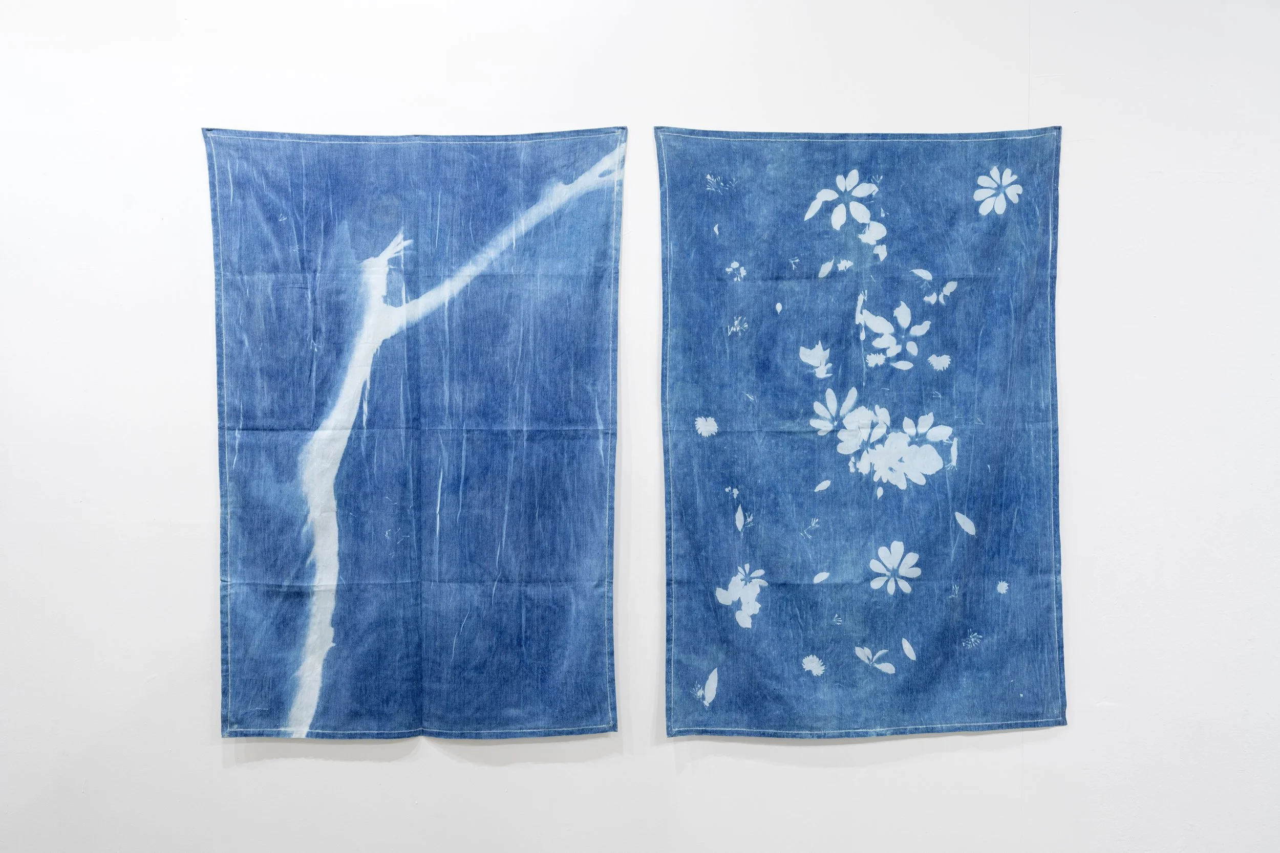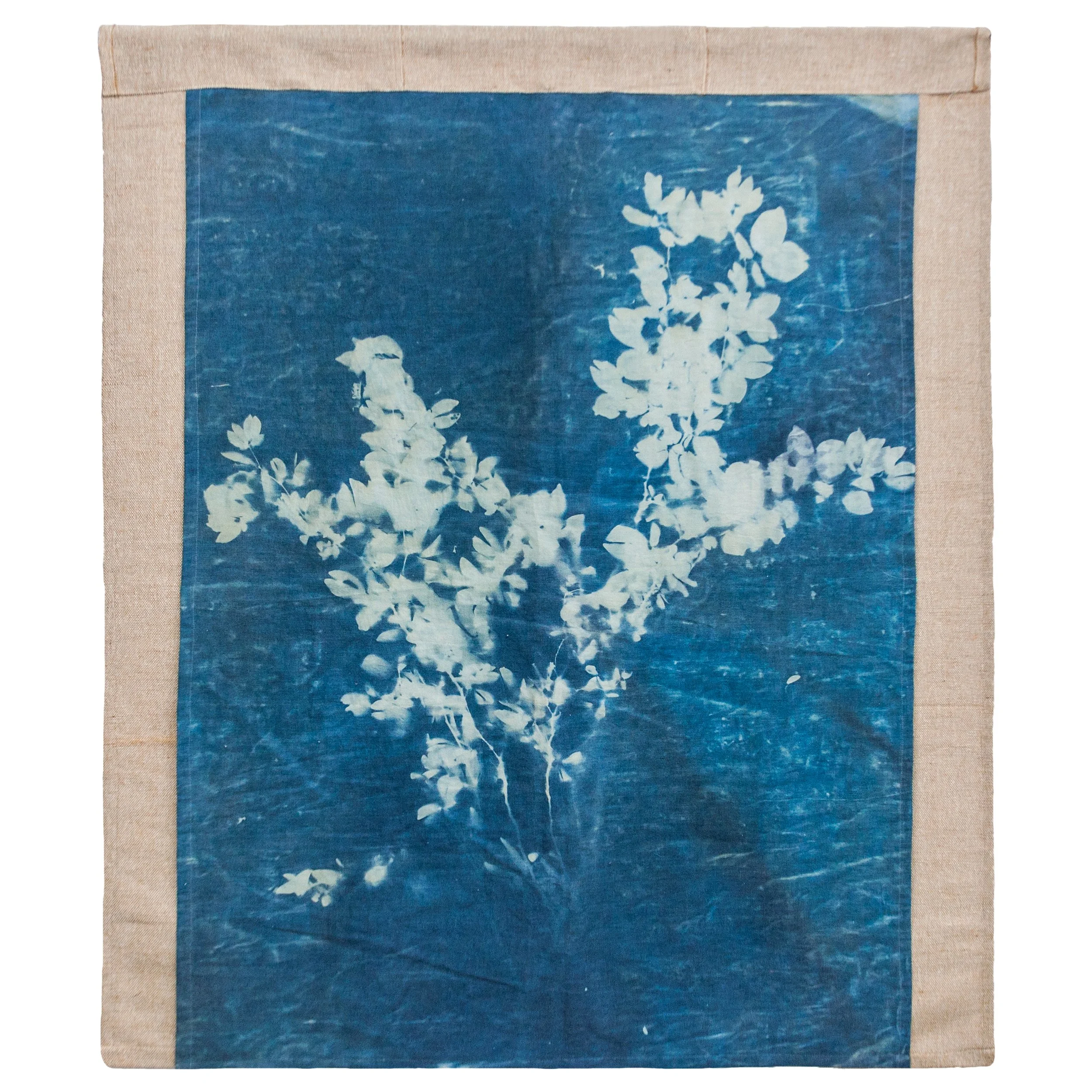 "Calliandra haematocephala)", 2023, Cyanotype on canvas with burlap backing, approx. 61 3/8 x 50 3/4 in (approx. 156 x 129 cm)