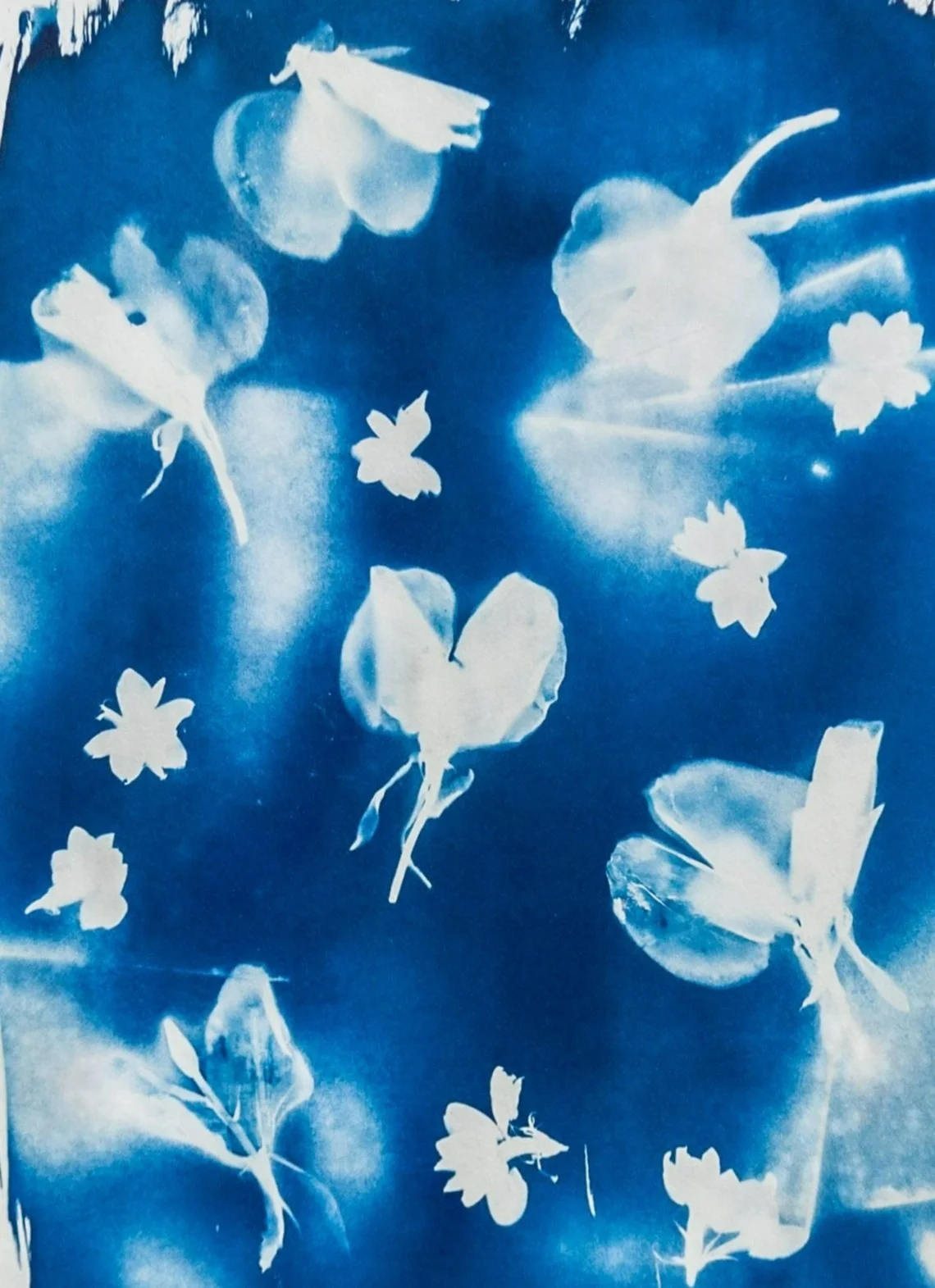 "Untitled I", 2022, Cyanotype on paper, 16 1/2 x 12 5/8 in (42 x 32 cm)