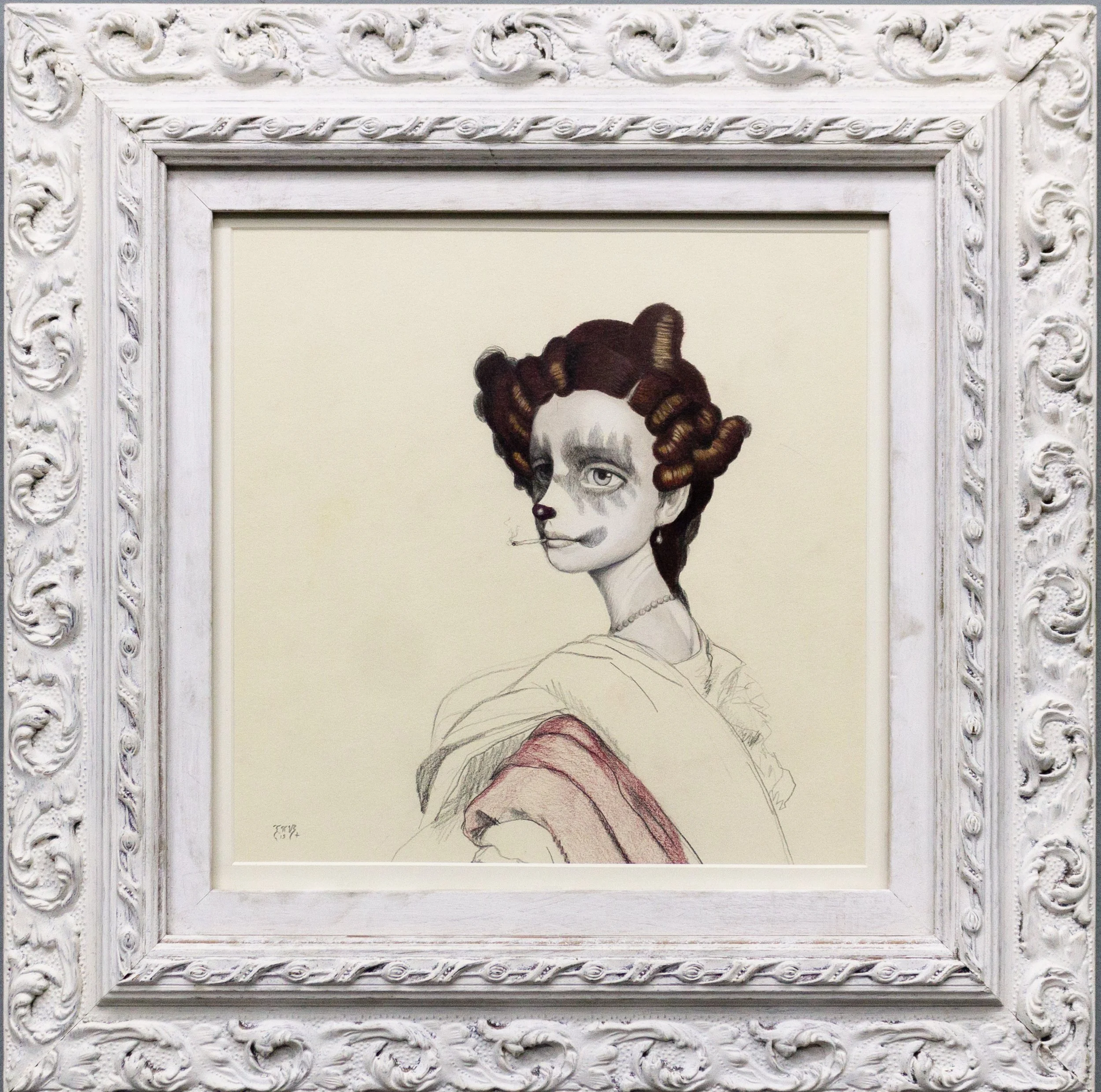 For Lorenzana, there is a similar preoccupation with challenging painting’s traditions. The Heads works emerged as the artist’s most recent series and plays upon portraiture’s art historical tradition. Earlier sketches like Mr Swabe (2014) or Drawing 2 (2016) already reveal Lorenzana’s preceding interest in distorting the genre as he renders impish and unsettling portraits of circus characters. In his intimate 2024 series, Lorenzana departs from mimesis, opting instead to strip down, warp, and rebuild the sitter until they become completely abstracted. What remains are large, colourful, rectangular heads that occupy almost the entirety of the canvas.