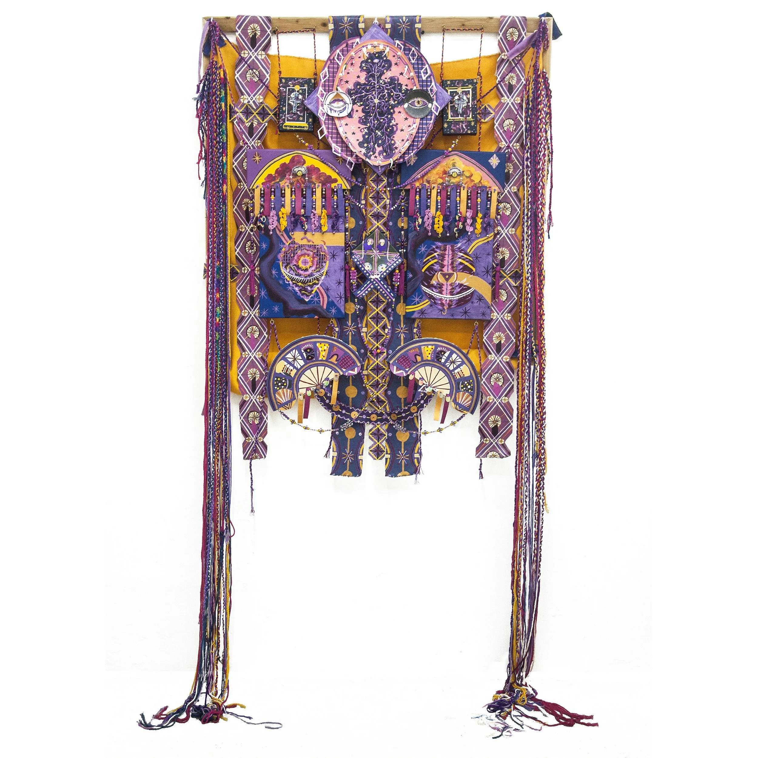 Denver Garza (b. 1987) uses painting, assemblage, and fabric to create art that reflects his interest in philosophy. Referencing various psychological frameworks, he believes that social rituals and interactions shape the identity of our society. Through his intricate works, he presents a visual phenomenology where he explores and analyzes modern behavior.