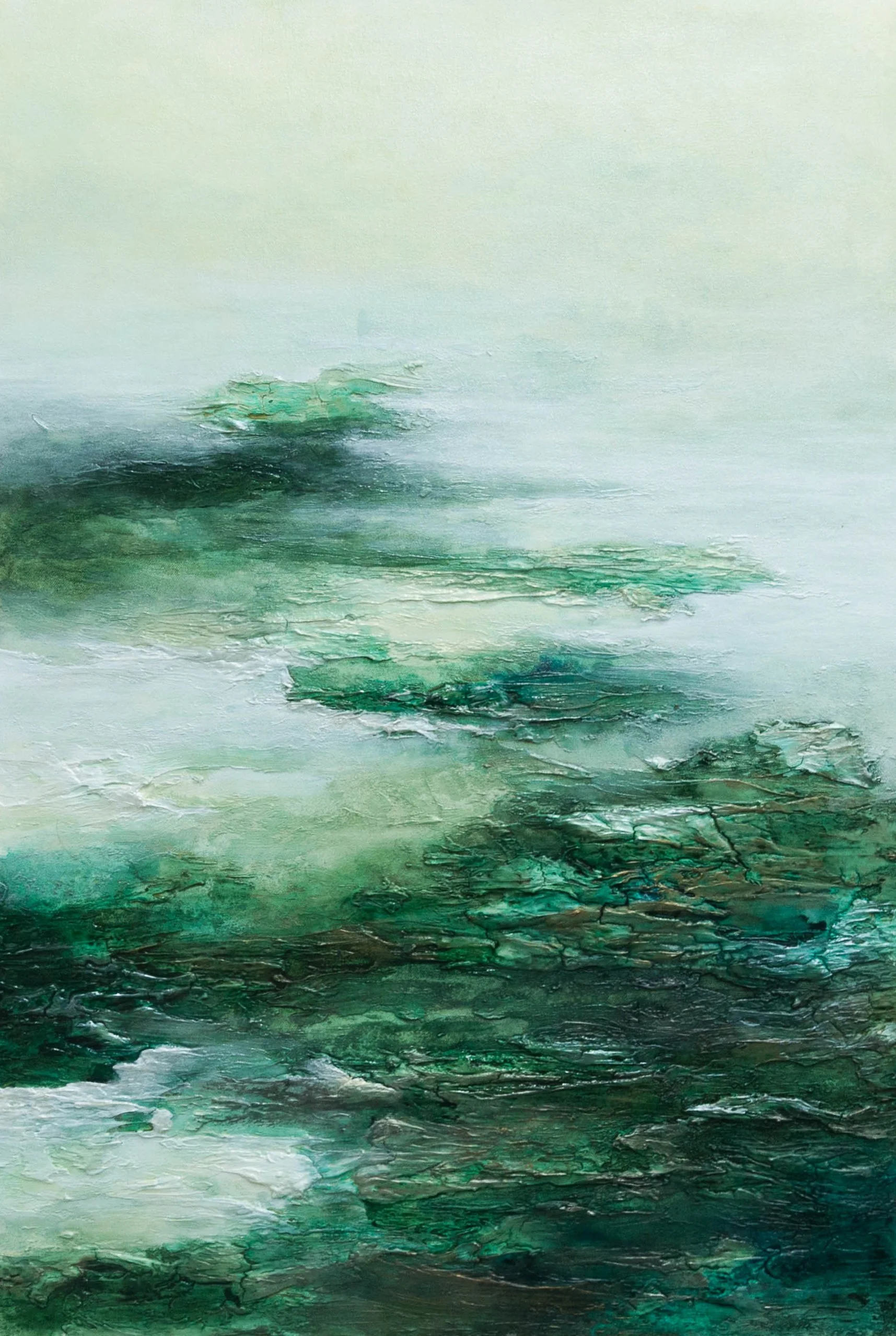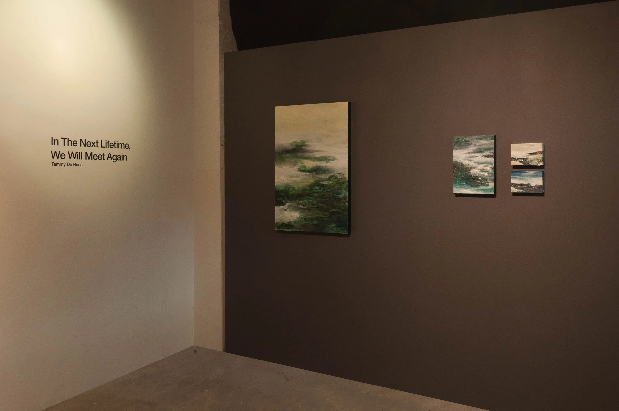 The exhibition In The Next Lifetime, We Will Meet Again presents images that act as postcards to her late grandfather whose birthday incidentally falls on the same day of the show’s opening. The places depicted in these works reside in the artist’s mind and are places where she can reconnect with her loved ones. Continuing her series of landscapes and seascapes formed through textures; an experiment in art-making that challenges our perception of appearances.