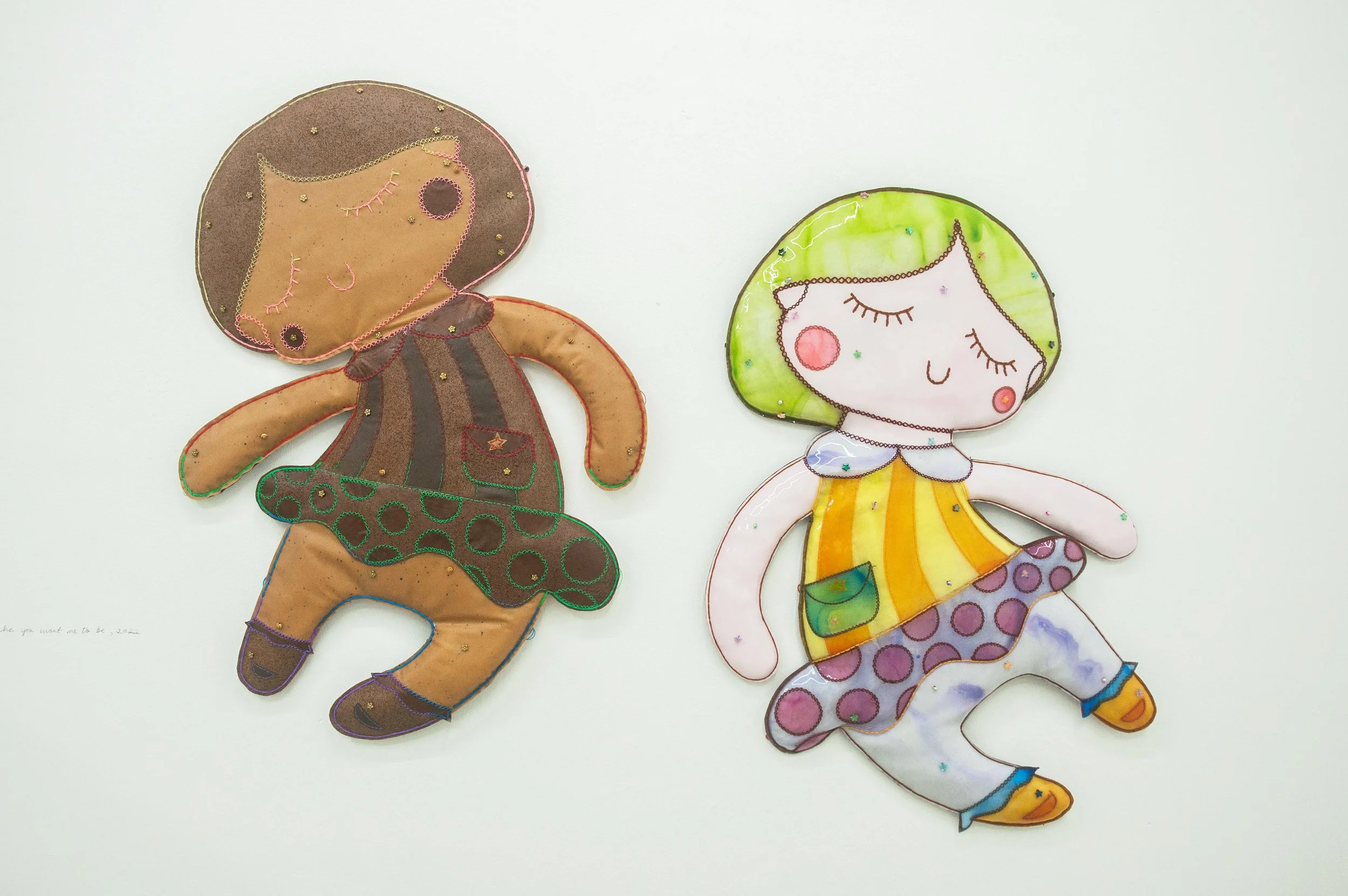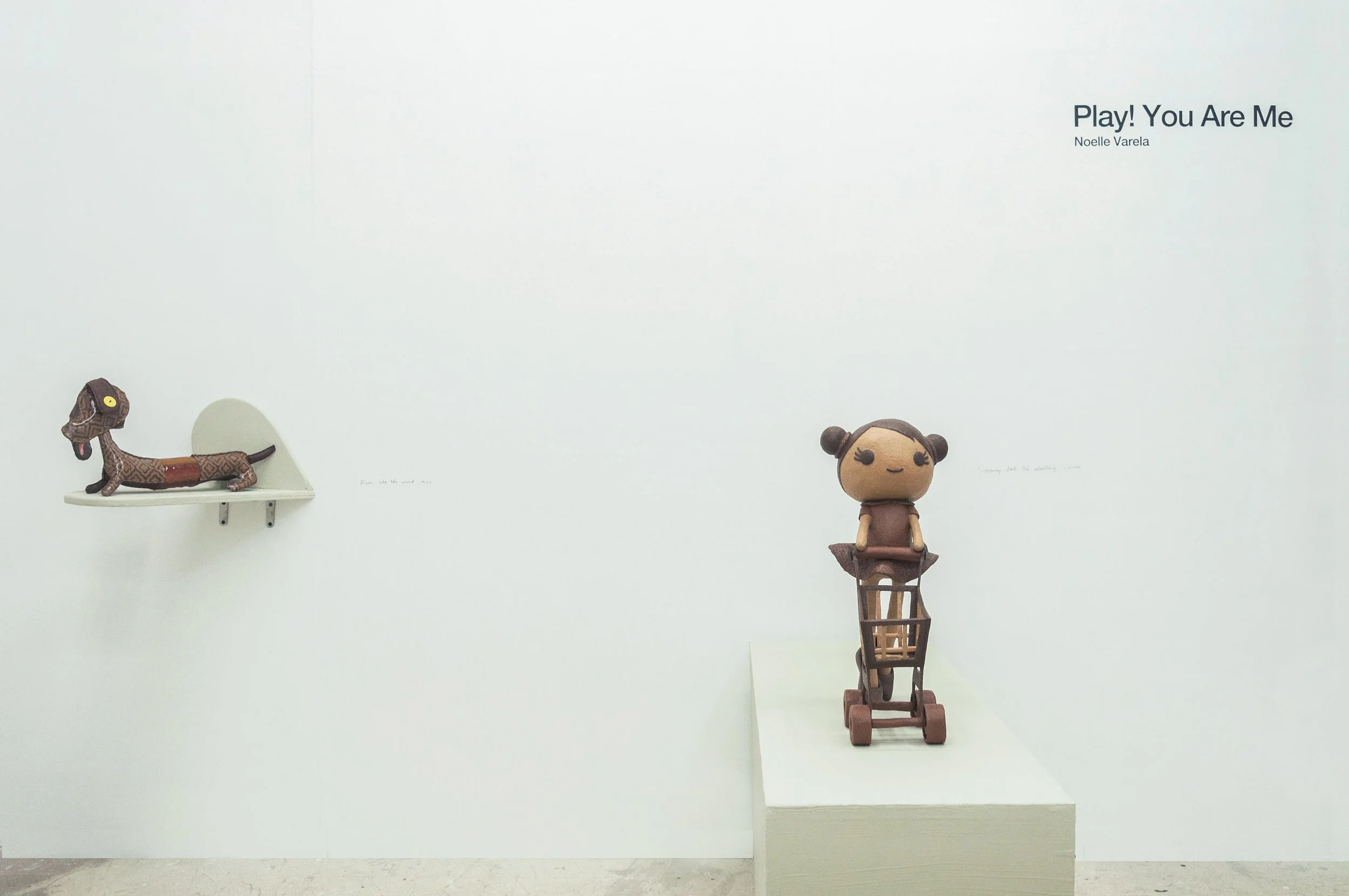 Tendencies naturally swing between extremes without much room for pause. Being in constant movement signals an untiring mind and restless heart and serves as the expression of consistent evolution. Seven guessing games and layered narratives make up Noelle Varela’s latest series of mixed media pieces. Alternating between characters or co-actors, pieces presented in Play! You are Me engages performances through toy play informed by explorations of the psyche. Varela vividly stitches childhood experiences and social realities, weaving together naïve innocence with mature intimacies. In these scenarios, who is playing? Noelle Varela’s practice responds to the material while exploring the intricacies of relations.