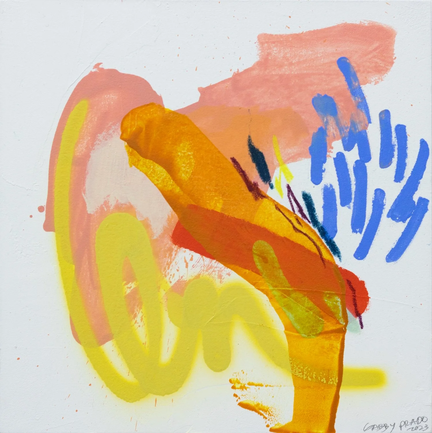 Gabby Prado (b. 1995) narrates her aesthetic journey in a series of paintings and sculptures derived from her experiences. After years of training in performance, specifically dancing, Prado envisioned a way to transform movement into large-scale art. Her abstract paintings rely on bodily movements and expressions to translate memories into visual representations and advocate a better understanding of our personal sensory narratives. Prado received her BFA (Painting) from the University of the Philippines, Diliman.