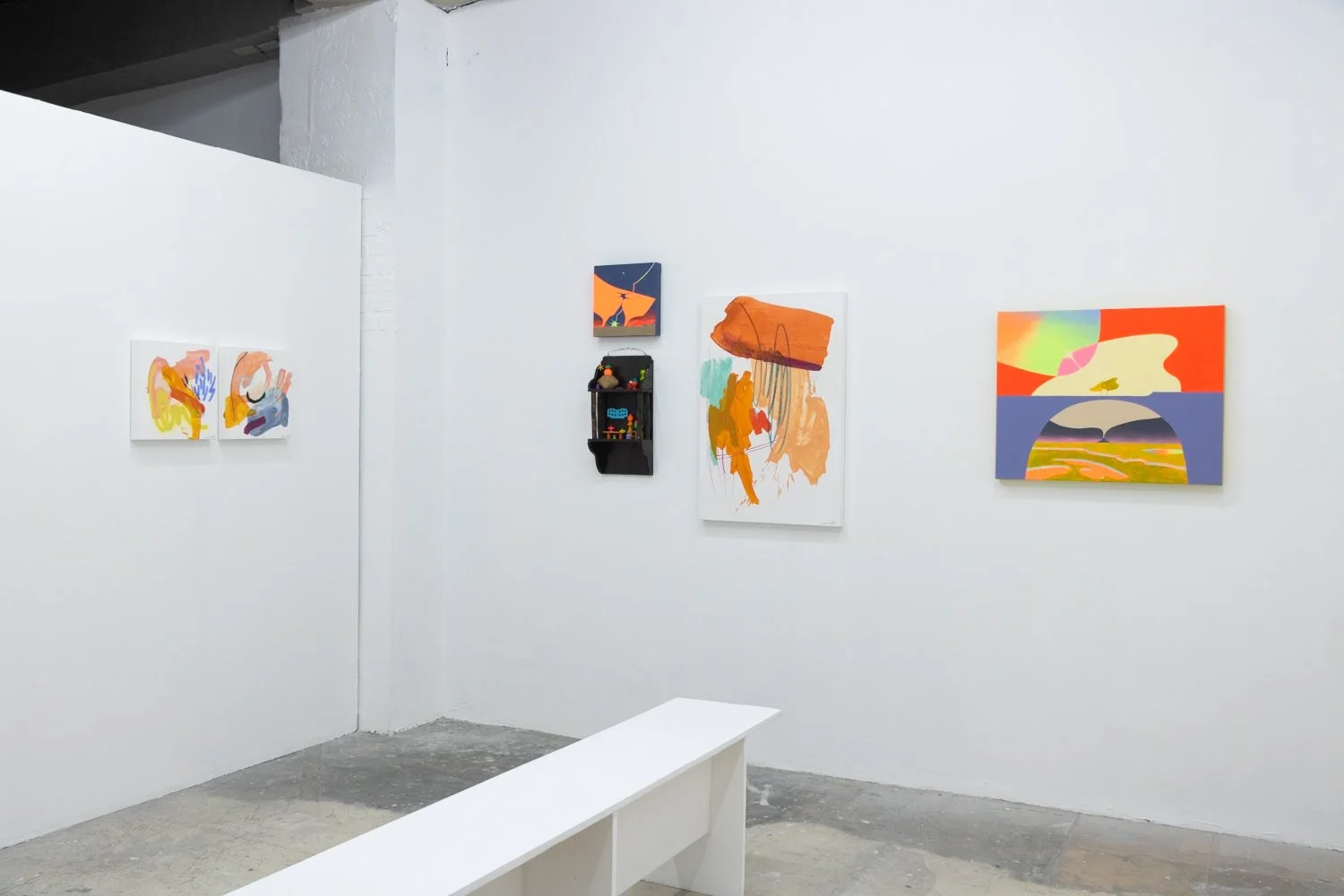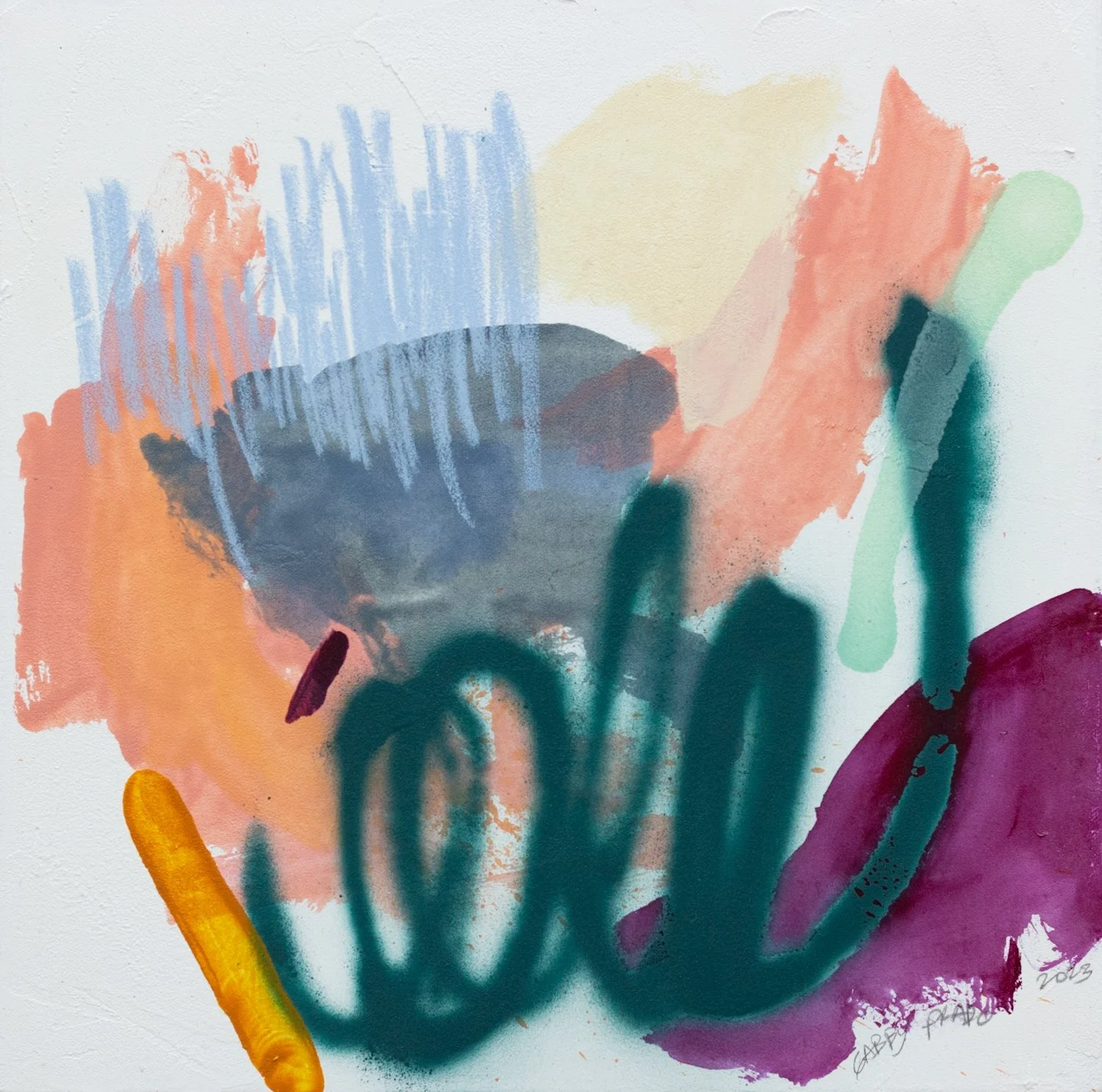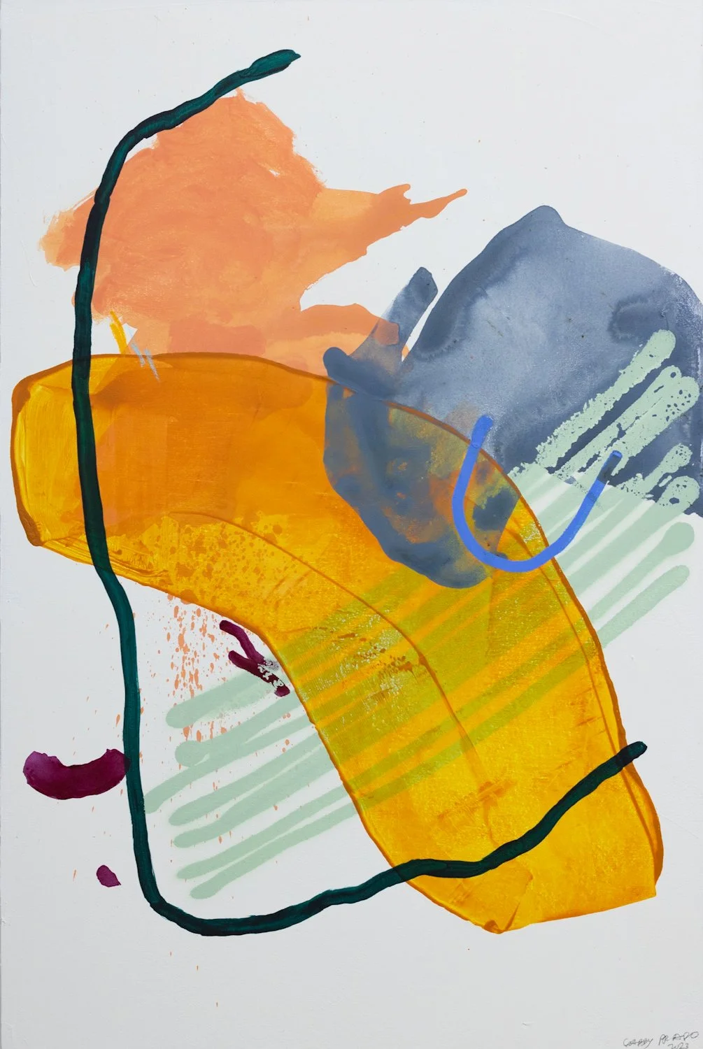 Moved by landscapes passing swiftly, Gabby Prado captures the glimpses of details often overlooked as loose forms, where lines are painted briskly and intentionally, layer after layer. Every image represents a fond memory of a particular object or experience from her immediate surroundings. Prado's strokes suggest the movement and continuity of these painted stories: the rooster crowing for its presence to be known, the Daruma doll's magnified energy of luck and future fortune, and the steady approach of separate objects weaving into each other's paths. This is more evident in scale, where colors play amongst themselves, like landscapes dancing, moving, and transitioning into another scene. These details could not have been depicted in such forms had she not made the conscious decision to look. The subjects seem set in motion as these paintings reflect Prado's yearning to slow things down as she begins to navigate the world more independently this time.