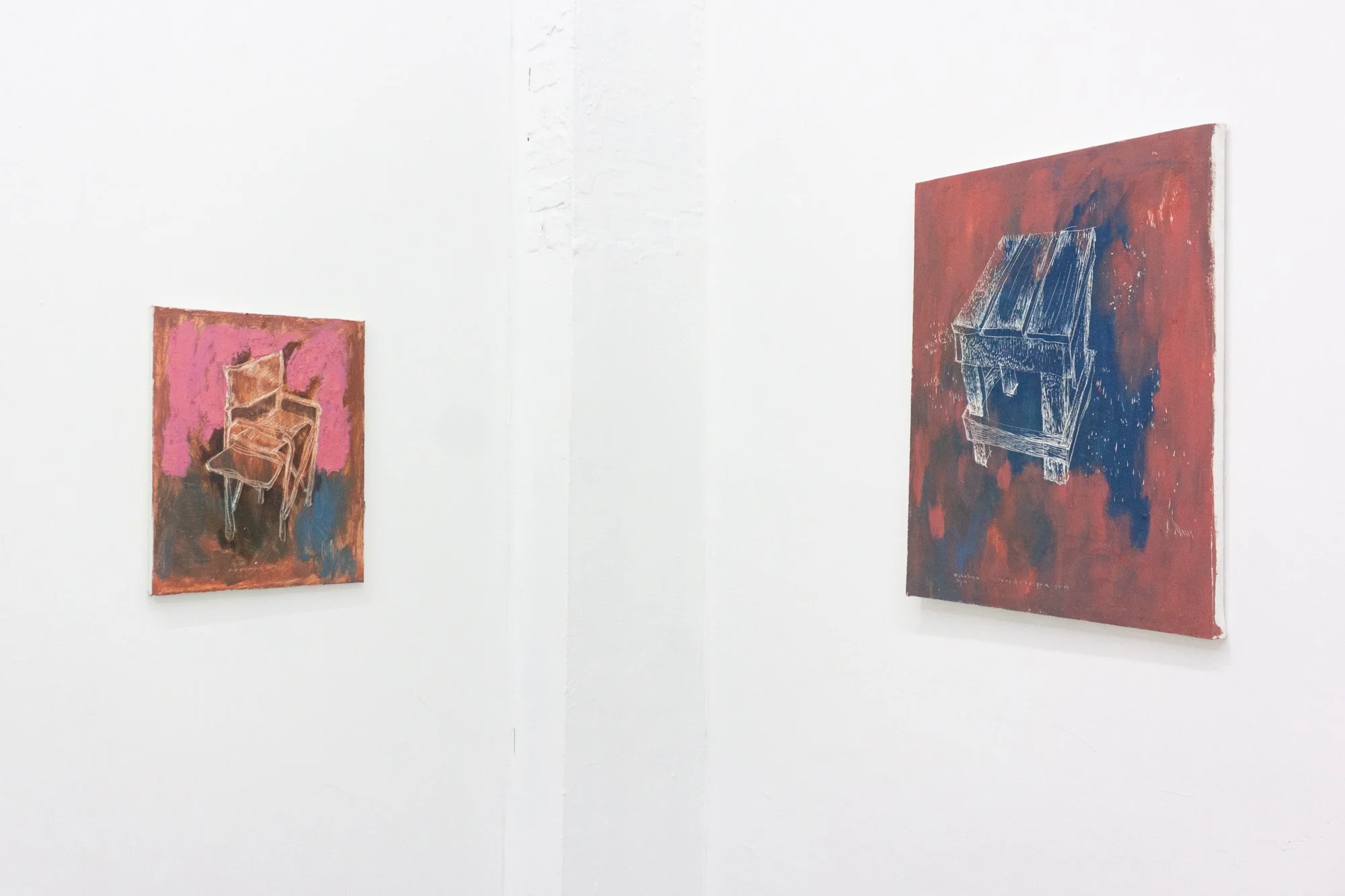 Compra's shift from his usual charcoal and natural pigment works to returning to oil painting is a significant transformation. Despite this change, he continues to use scratches to depict multiple chairs, which he sees as symbols of resilience and territoriality. The scratches, he explains, are an occupant's raw and primal instinct to leave marks that assert ownership and survival.