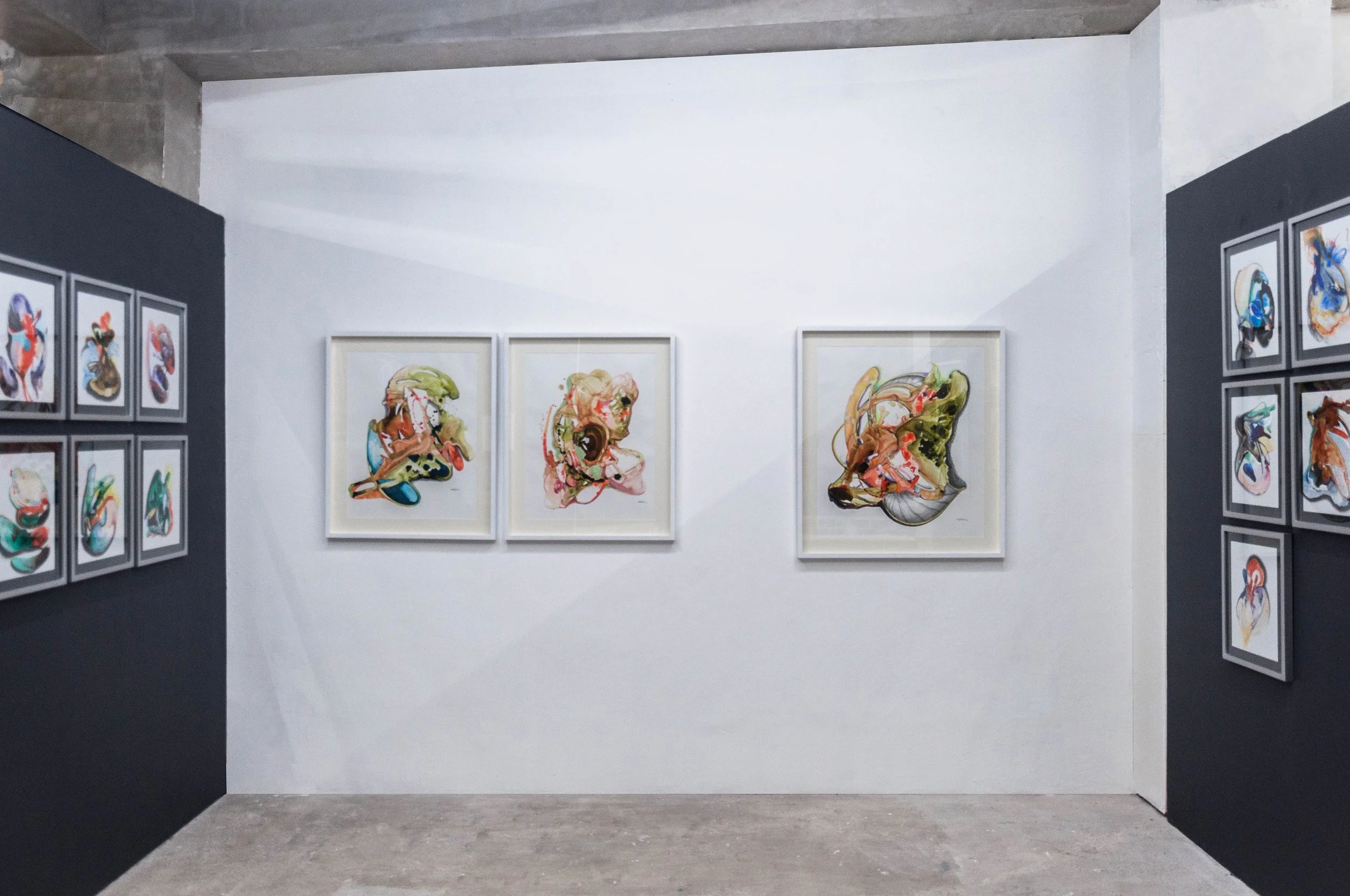 Prompted by Derek Jarman’s “Chroma” and his seminal text on the phenomenology of color, Faye Pamintuan explores her relationship with the color orange and the different contexts it navigates throughout her life. Working in abstraction, Pamintuan surrenders control in the process of image and mark-making, which eventually led to the artist creating works while in a state similar to automatism: producing bodily movements that are not consciously controlled. The artist contemplates the birthing of images instead of carefully steering the composition. Thus, deviating from Pamintuan’s previous works where she exercised her authority to dominate a narrative in evaluating her lived experiences and constituting meta-physical areas where she can mark her control.