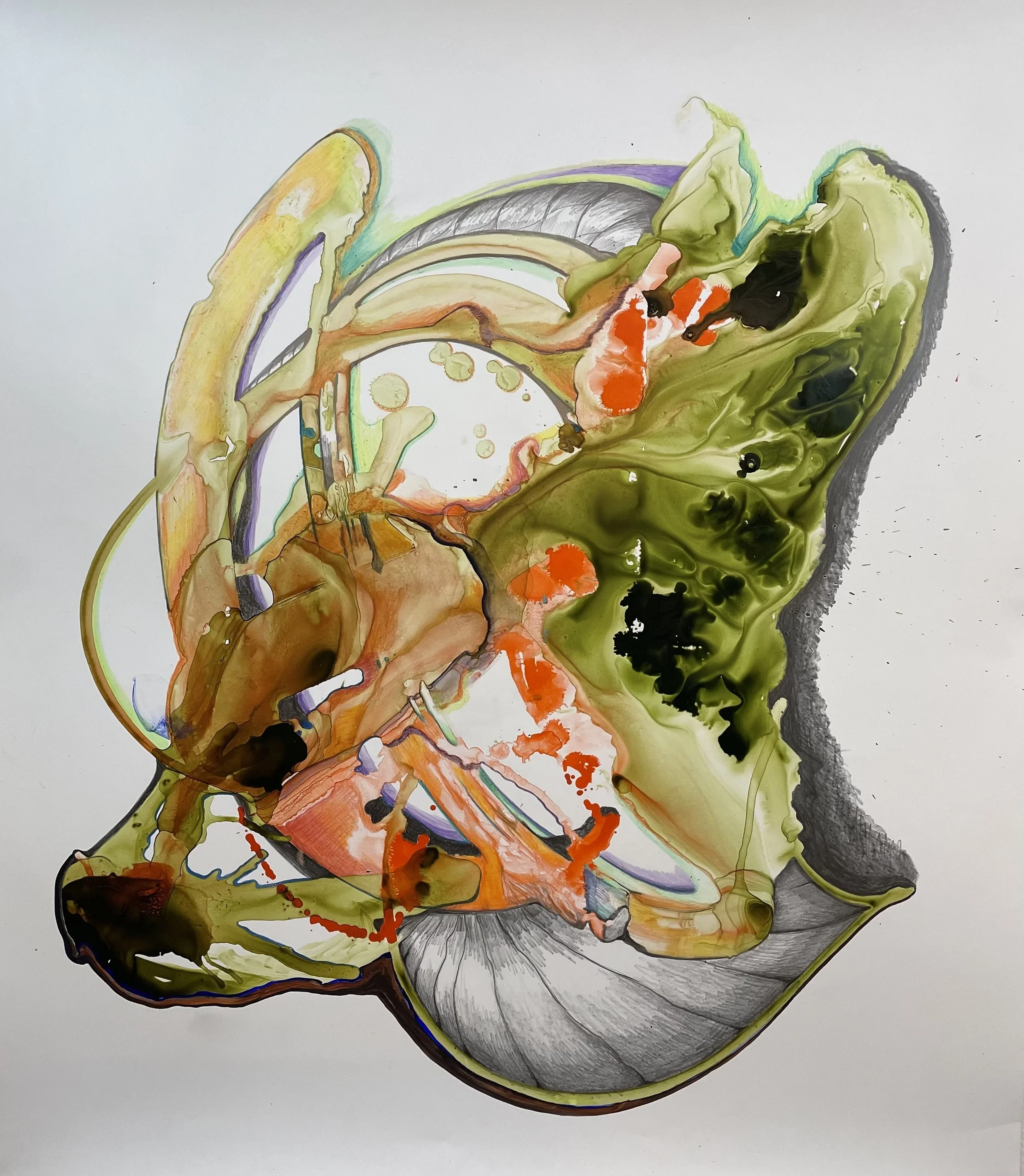 Faye Pamintuan (b. 1994) was born in the Philippines and spent formidable years in Texas, USA. Spending much of her life traveling between the two countries, Pamintuan’s practice is informed by her early introduction to western abstraction while observing the landscapes, bodies of water, and environments of the two regions. Her works are inquiries that respond to the dilemma of the diaspora: probing on the sense of self through illustrated spaces, forms, and imagined terrains. Pamintuan received her BFA in Painting (magna cum laude) from the University of the Philippines, Diliman.