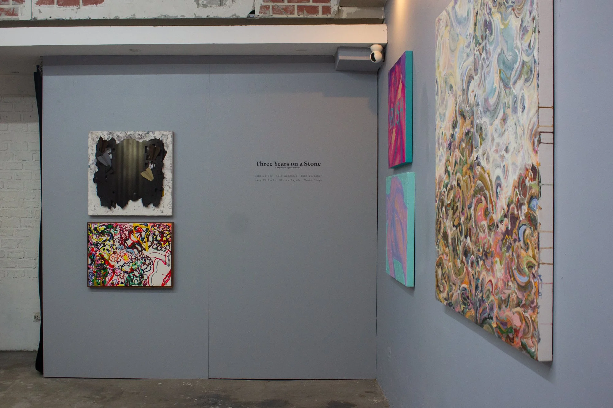 The exhibition's title is from the Japanese proverb 石の上にも三年 (ishi no ue ni mo san nen), which teaches us that perseverance wins in the end and that endurance is a virtue. The six artists featured either recently experienced drastic changes in their artistic careers or worked across themes and mediums that tread outside the comfortable and the ordinary. Suggesting that 'spending three years on a cold stone will warm the stone'’ the proverb reminds us that things take time and one must remain patient and undeterred in continuing their practices amidst sudden transformations.