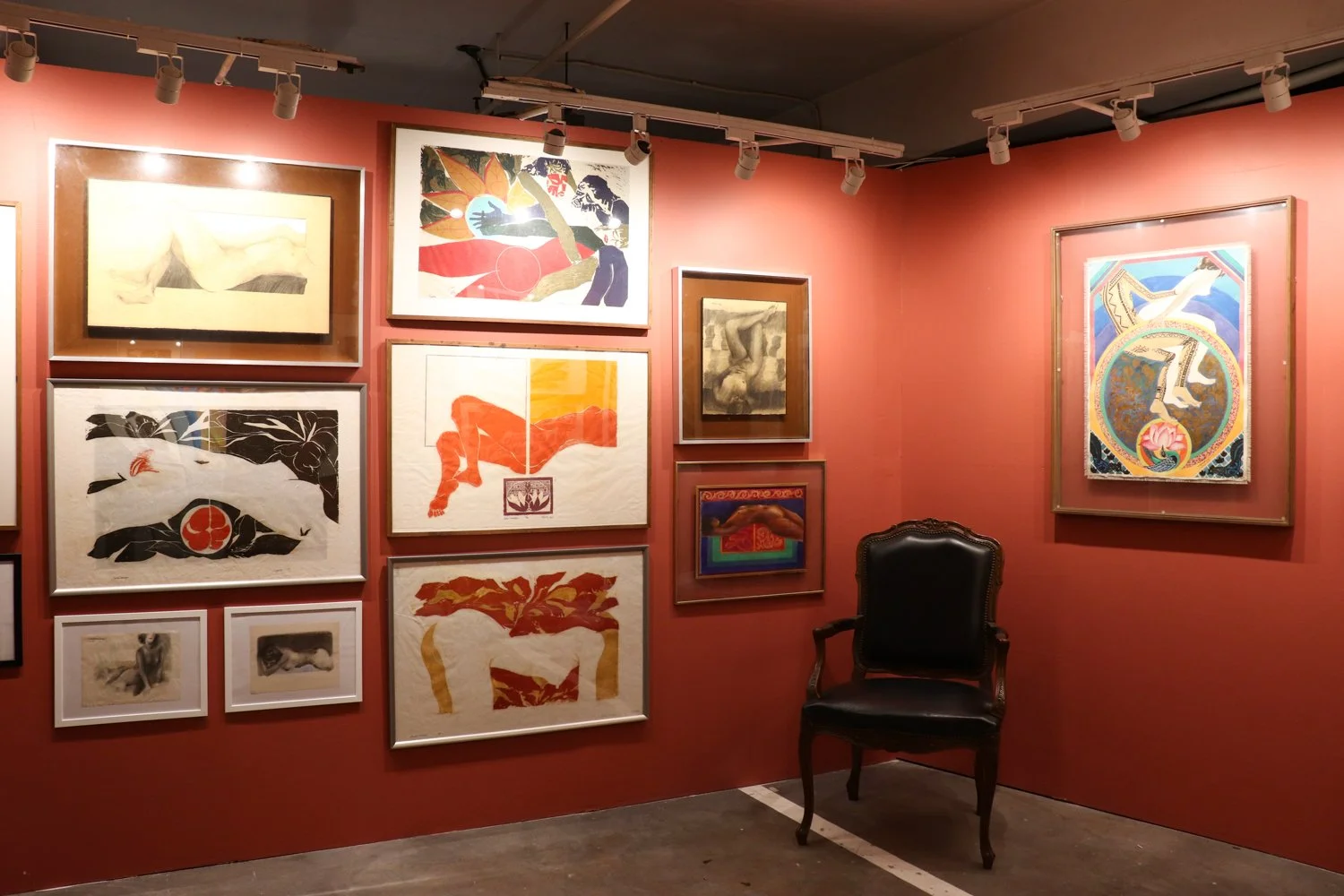 The second section of the exhibition, titled "The Art of The Erotic," is dedicated to paintings and prints mainly produced from the 1960s to the 1970s, where images depicting the beauty and sensuality of the female form and renderings of the human figure in intimate sexual dispositions are dominant. Paras-Perez's formalist approach to composition is evident in the prominent use of negative and positive space to define shape and form, particularly in presenting the female body. Isolating figures by refusing to fill their contours with color or somehow making them the most visible element in the pictorial creates an illusion that the figures are illuminated and positioned with grace. As art critic Paul Zafaralla described Paras-Perez’s unconventional use of light as "a device to highlight the organic power of form to create tension and suspense where natural light fails to do so."