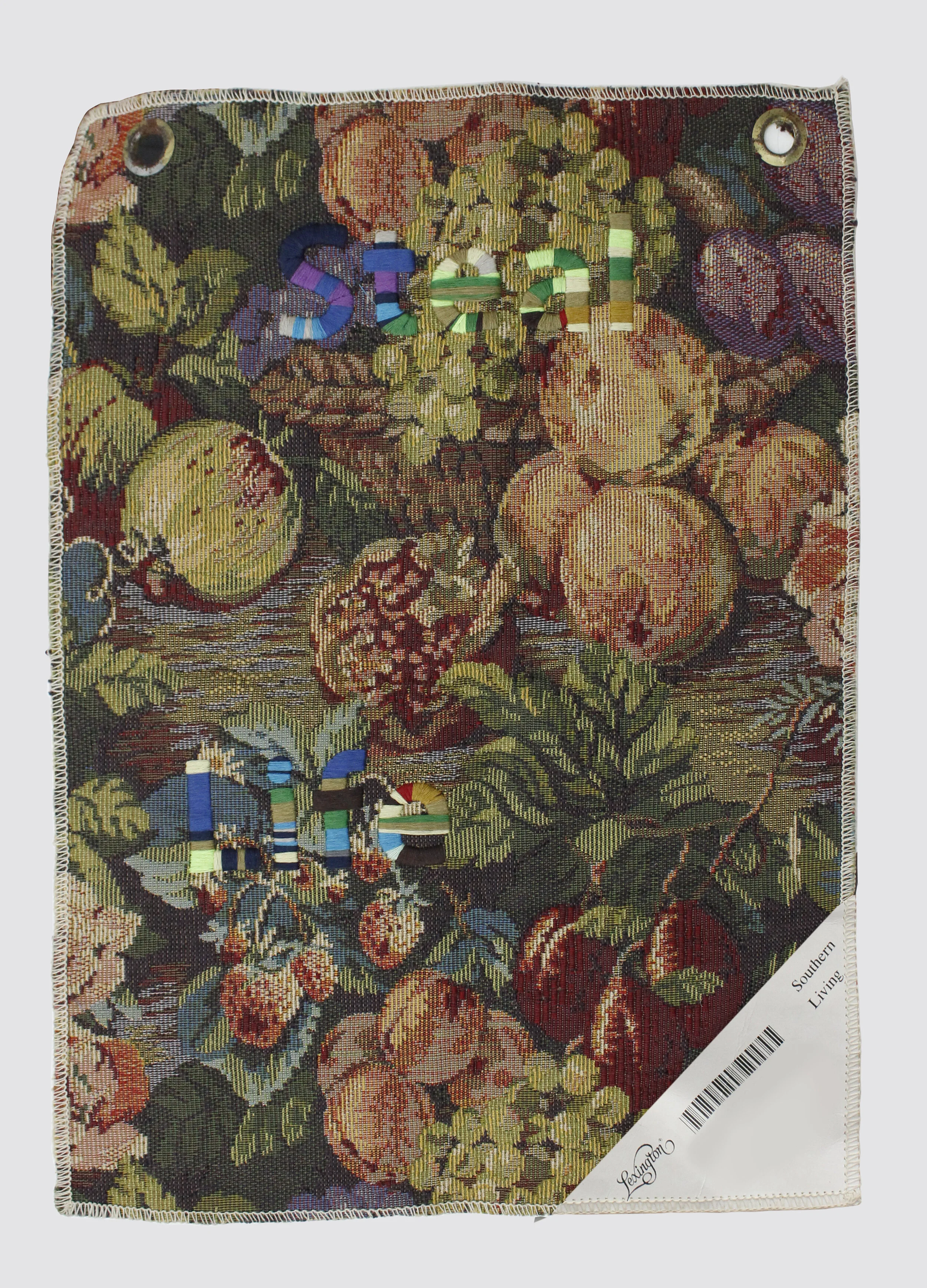 Kat Medina, Steal Life, 2016, Embroidery on found textile sample, 16.5 x 12 in